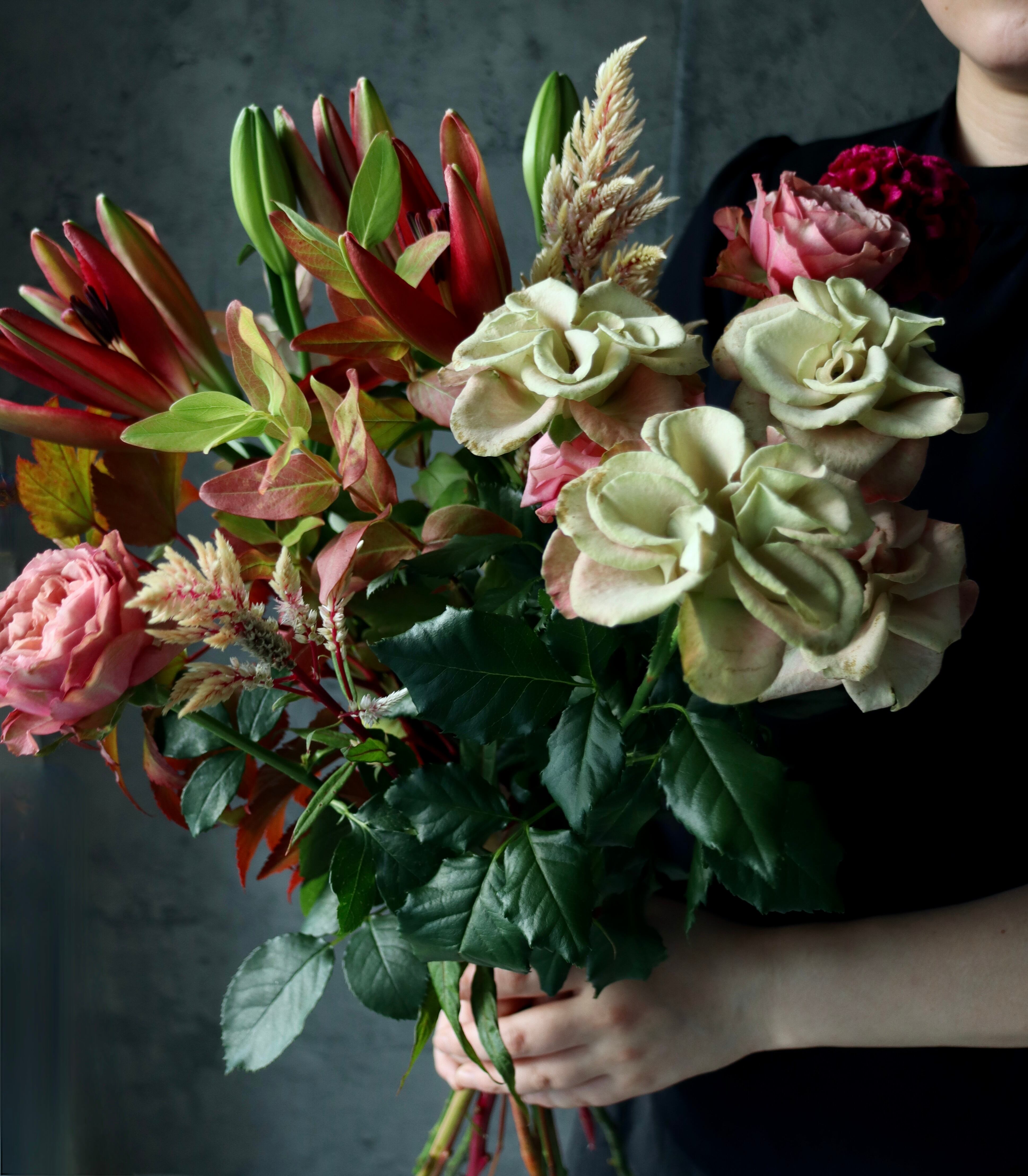 配信中に、仕入れた花材の中でご希望をお伺いすることも出来ます。
